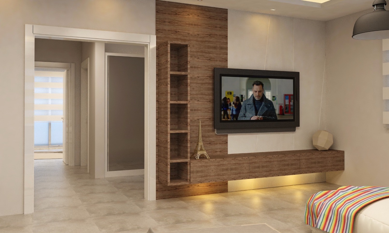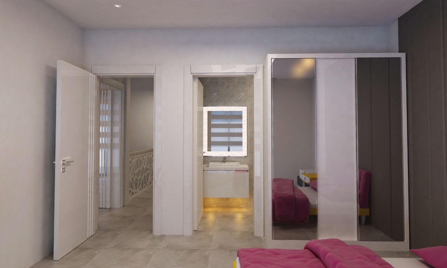 Zarif ve tarz sahibi bir yatak odasıYatak odası da yine hacmen oldukça geniş bir alanı kaplıyor ve bu yönüyle son derece ferah ve aydınlık bir ortam sağlıyor. Tavana gizlenmiş spot aydınlatmalar sayesinde geceleri de sağlıklı ve gözü yormayan tonda bir ışık elde edilmesi mümkün hale gelmiş. Yatak odasının hemen yanında ise yine geniş bir giyinme odası bulunuyor.